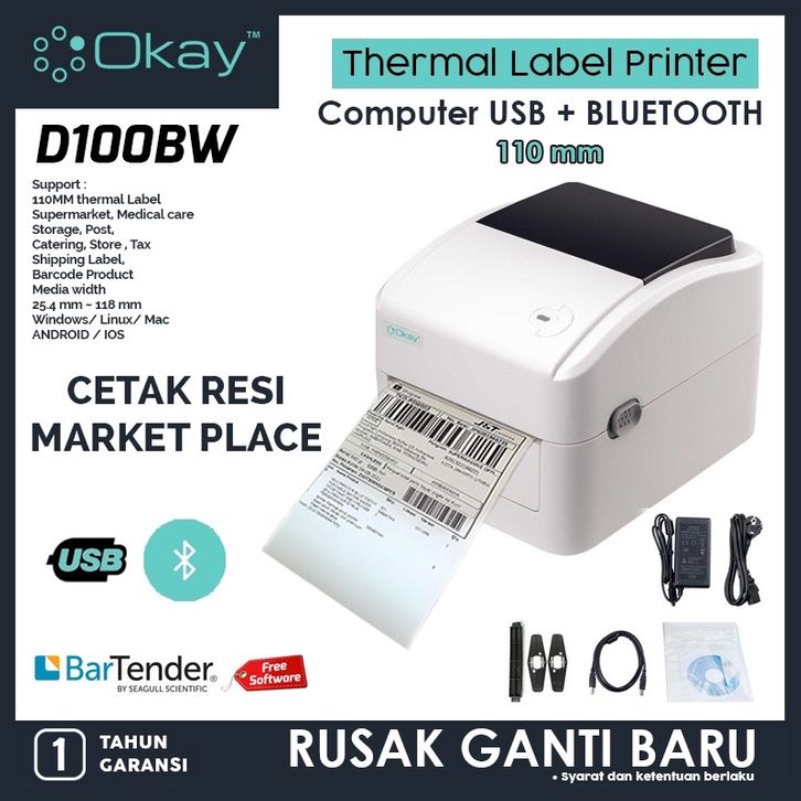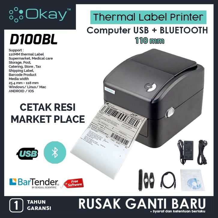 Printer Resi / Printer / OKAY D100 BW BL Printer label pengiriman barcode thermal Max Sticker A6 110mm Printer Resi