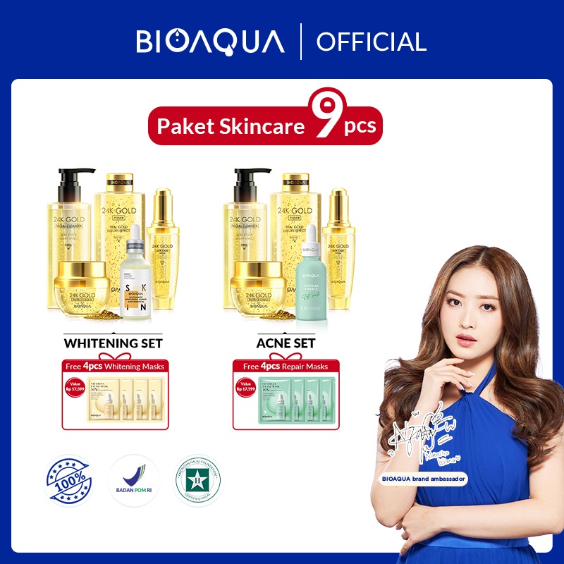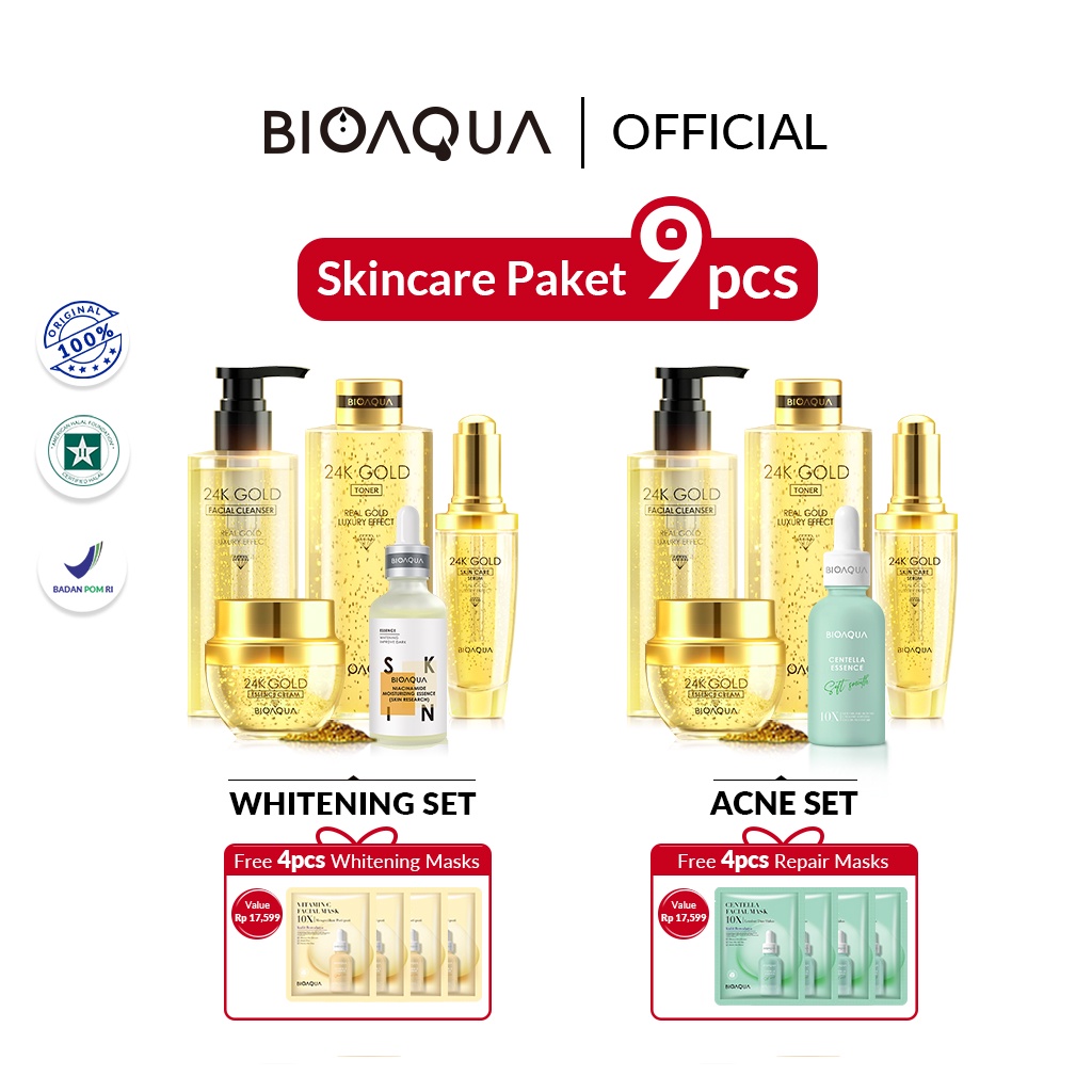 PROMO BIOAQUA OFFICIAL STORE - BIOAQUA PAKET LENGKAP 9 PCS ORI WHITENING SET , ACNE CARE , TONER , CREAM