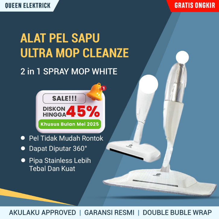 Alat Pel Lantai Sapu 2 In 1 Pembersihan Ultra Mop Pel Semprotan Air Warna Putih Portable Digunakan Basah Kering praktis