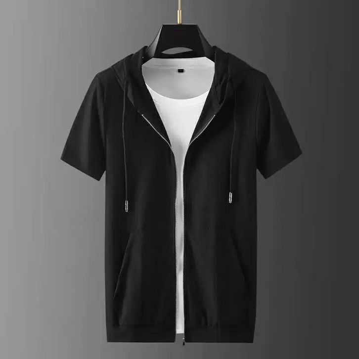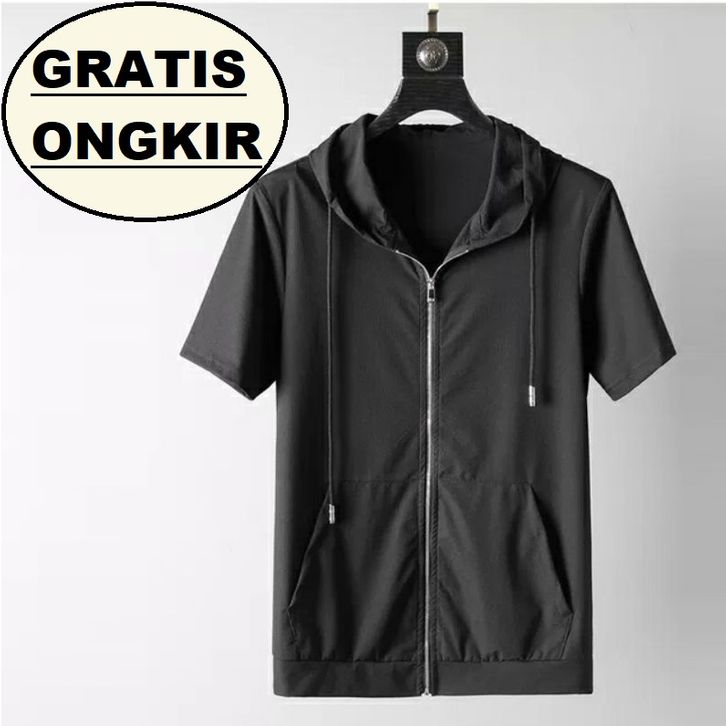 Hoodie Pria Zipper lengan pandek polos unisex