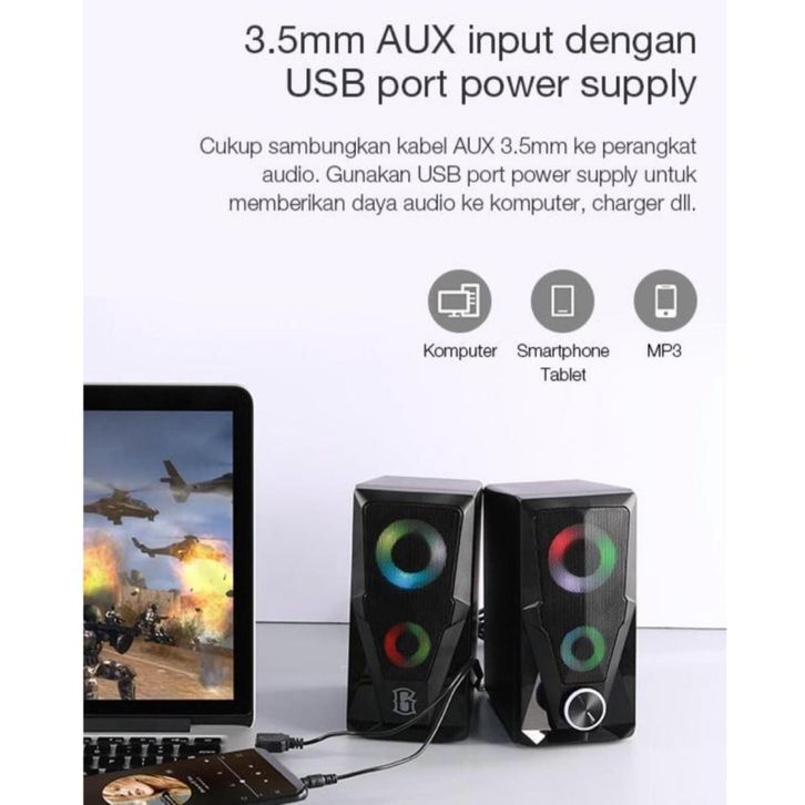 ROBOT RS200 GAMING SPEAKER AKTIF PC COMPUTER LAPTOP WITH AUX 3.5MM