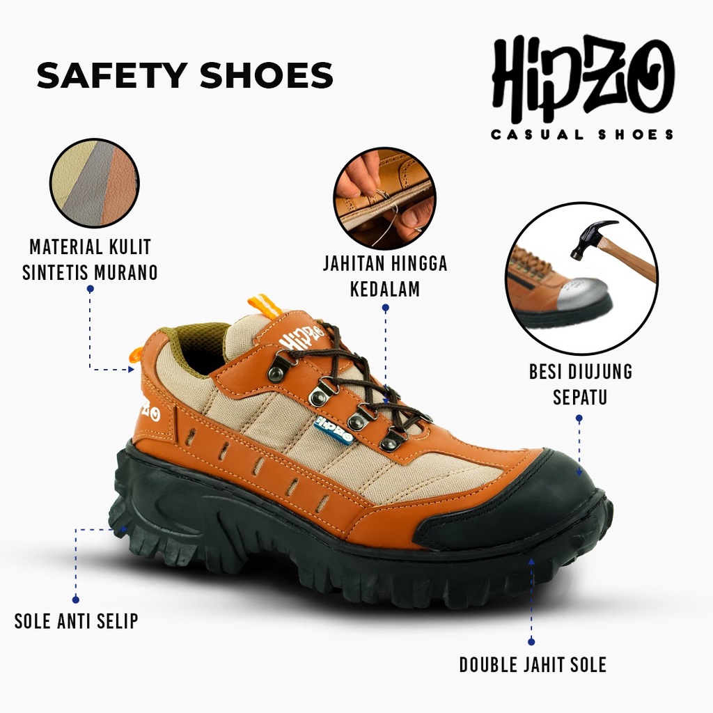 SEPATU PRIA SAFETY BESI HIPZO M-052 ORIGINAL 100 PERSEN UNTUK PRIA KERJA PROYEK ANTI AIR