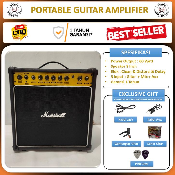 ampli gitar marshall 8 Inch 3 Input banyak bonus ada efek distorsi & delay & aux