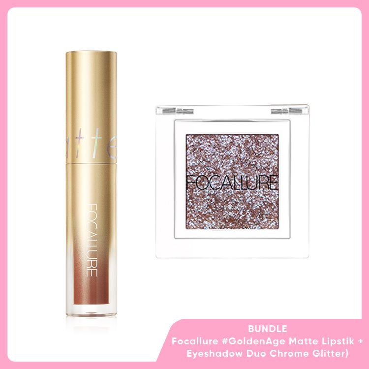 BUNDLE Focallure #GoldenAge Matte Lipstik FA245 & Eyeshadow Duo Chrome FA75 Glitter