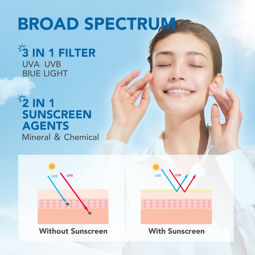 YOU Triple UV Elixir Sunscreen Gel SPF 50+ PA++++ [UVA UVB Blue Light Protection] Sunblock untuk Kulit Berminyak | Tone