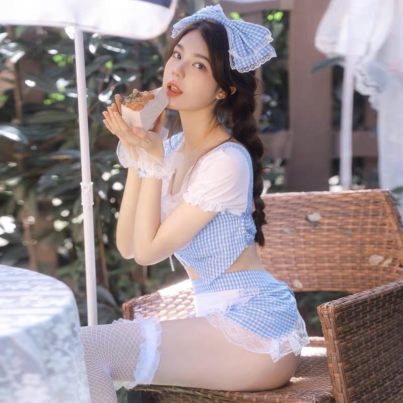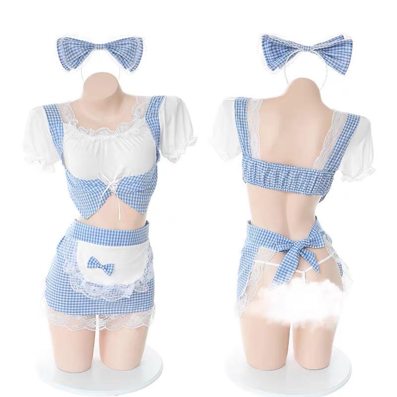 Lingerie Cosplay Maid / Set lingerie Maid Kotak-kotak