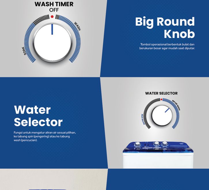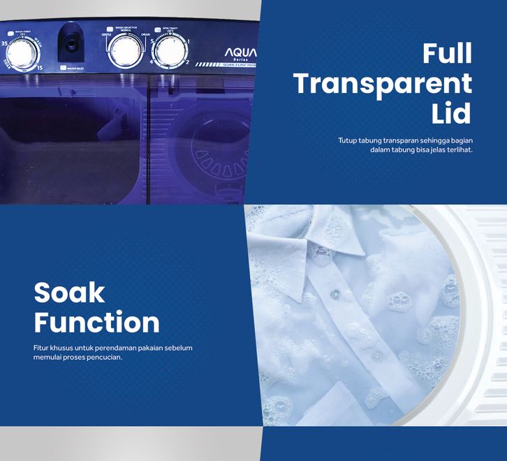 AQUA MESIN CUCI 2 TABUNG ELEKTRONIK QW-770XT TWIN TUB 7 KG UNIT ONLY UNTUK DAERAH JABODETABEK