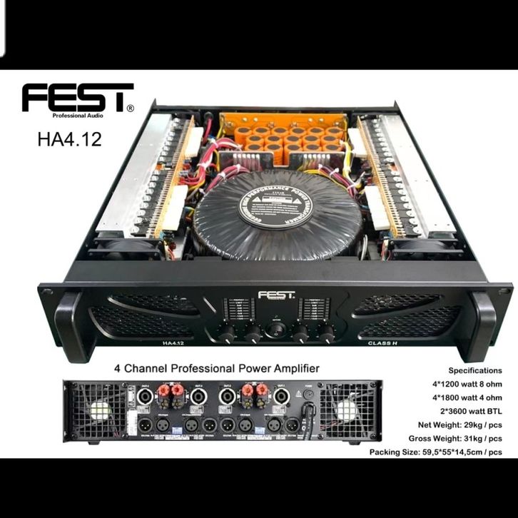 Power Amplifier 4 Channel Fest HA 4 12 4 X 1200 Class H Original Resmi