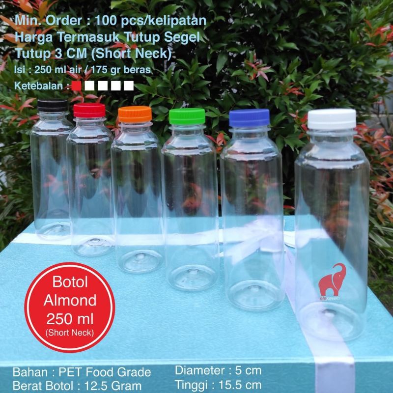 Botol Almond Plastik BULAT 250 ml Isi 100 FREE KARDUS / Botol Susu Free ongkir jabodetabek