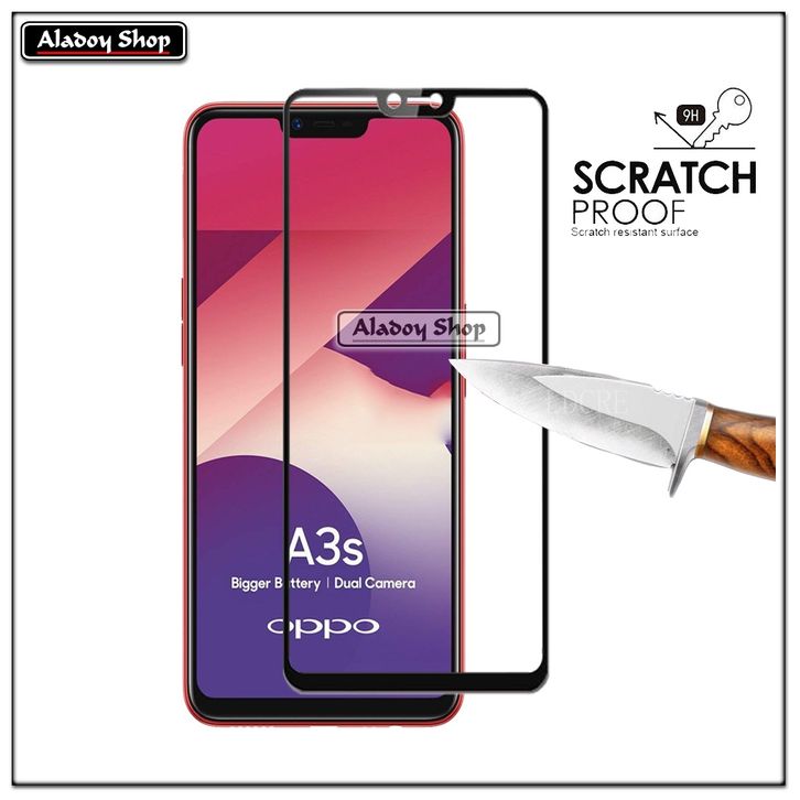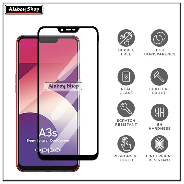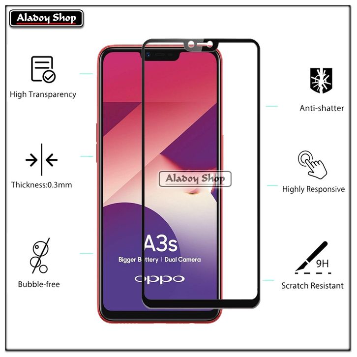 PAKET Tempered Glass Layar Full Cover dan Tempered Glass Camera OP PO A3s