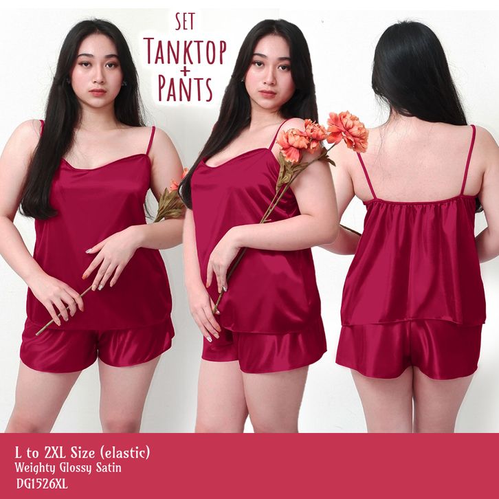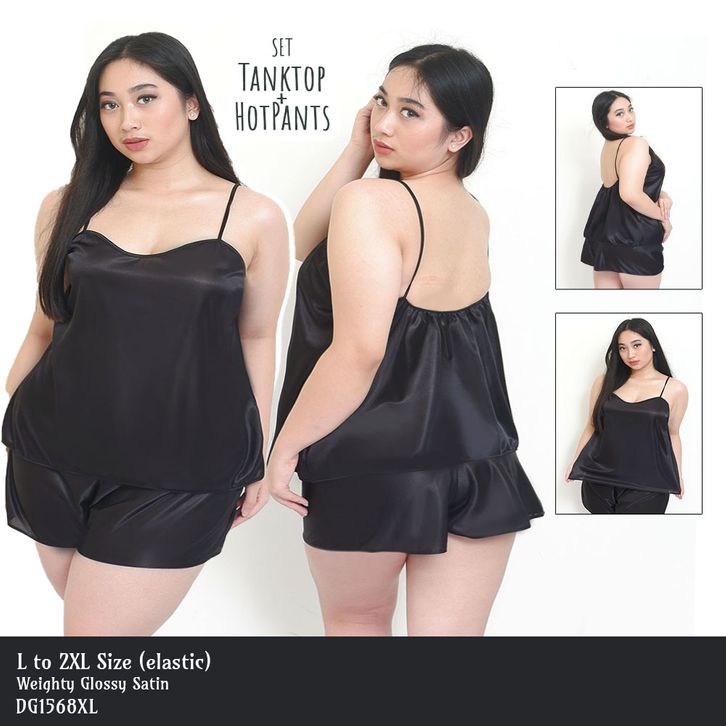 Folva Tanktop Dress Atasan Celana Pendek Wanita Satin Xl Jumbo Free Ongkir Jabodetabek