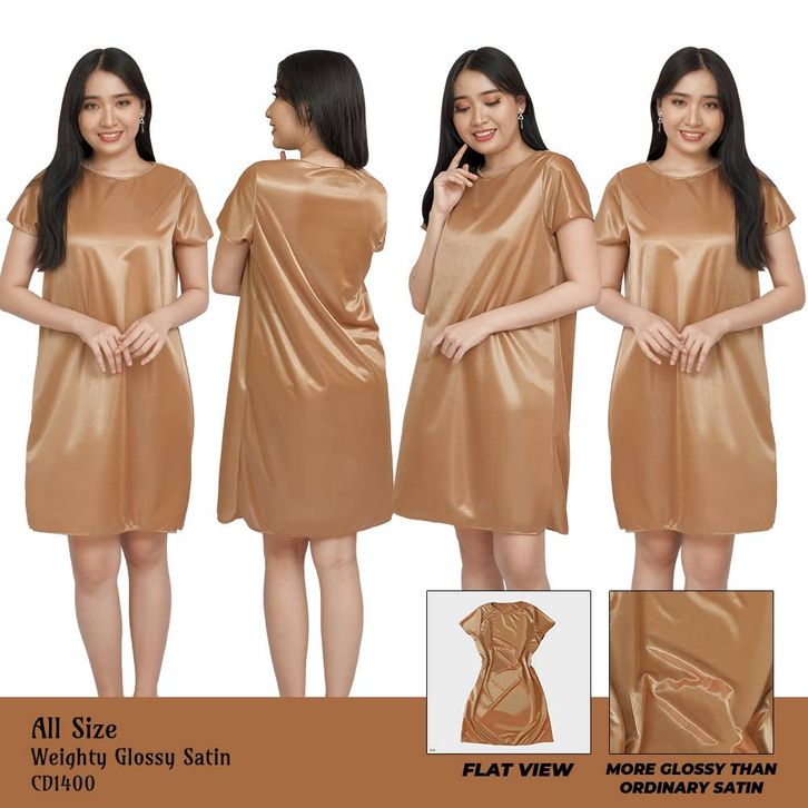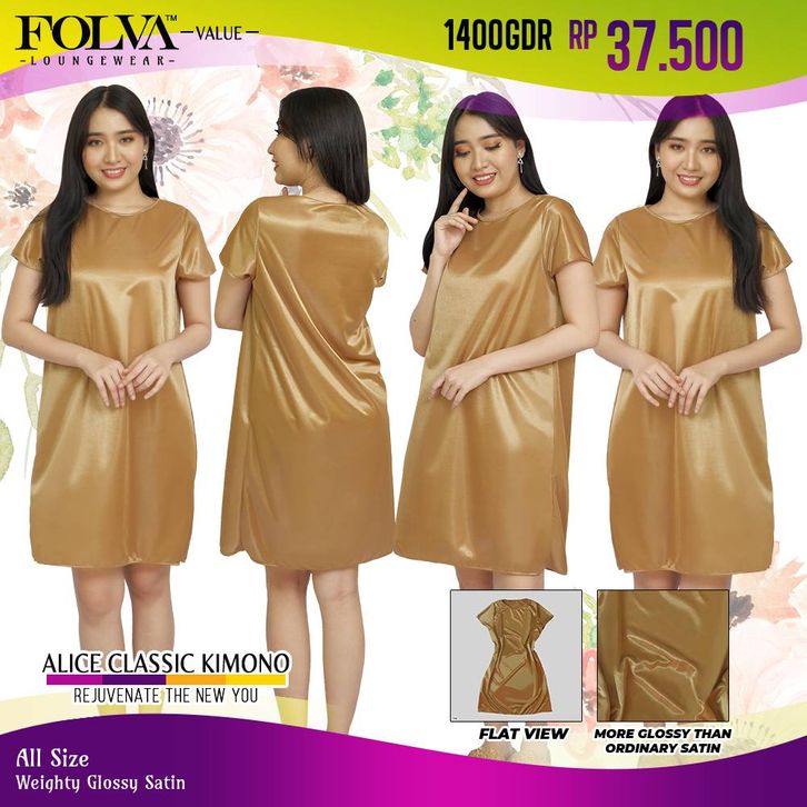 Folva Tanktop Dress Baju Rumah Satin 1400GDR Gold All Size Free Ongkir Jabodetabek