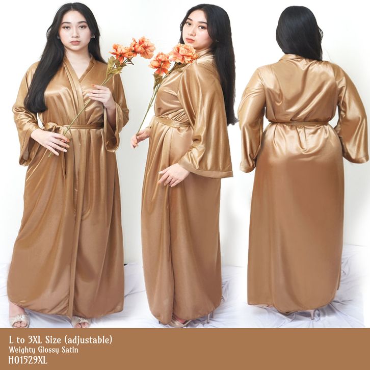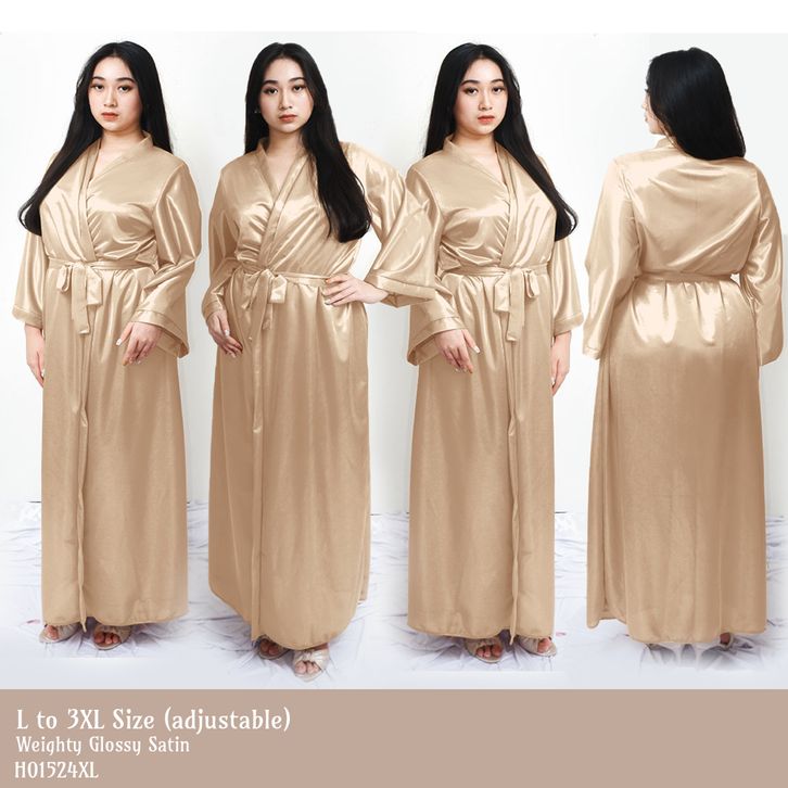 Folva Kimono Panjang Baju Tidur Wanita Satin Xl Big Size Jumbo Free Ongkir Jabodetabek