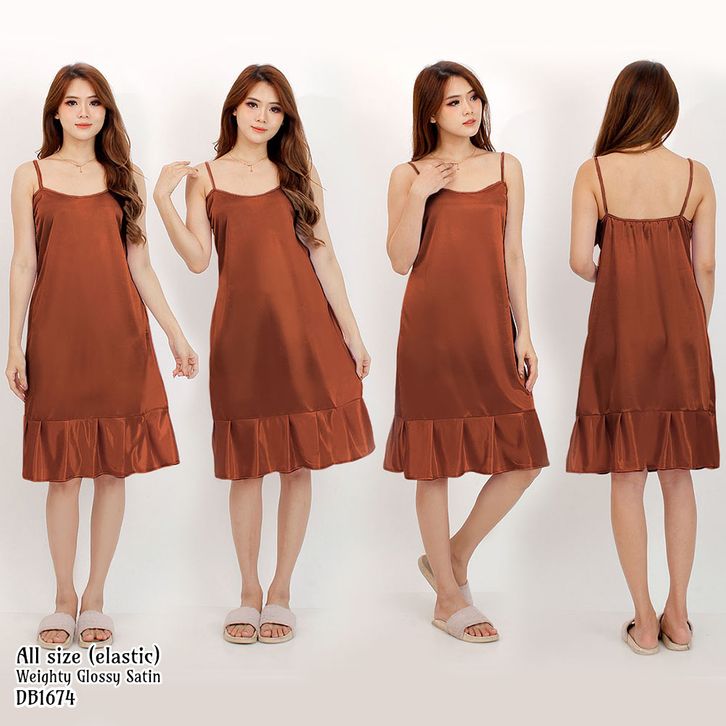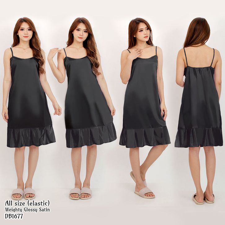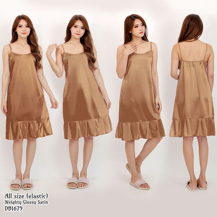 Folva Baju Tidur Tanktop Wanita Daster Satin Lipit Selutut All Size Free Ongkir Jabodetabek
