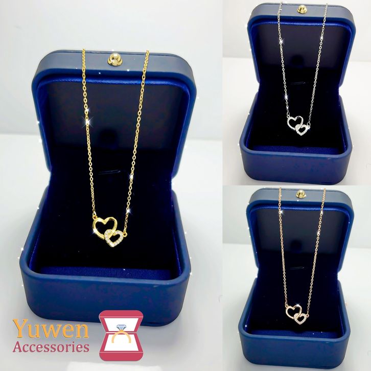 Kalung Titanium Stainless Steel 2 Love Permata Cantik Dan ELegant Anti Luntur, Karat & Air