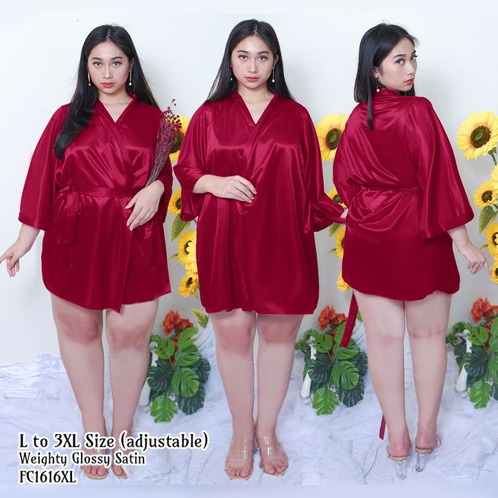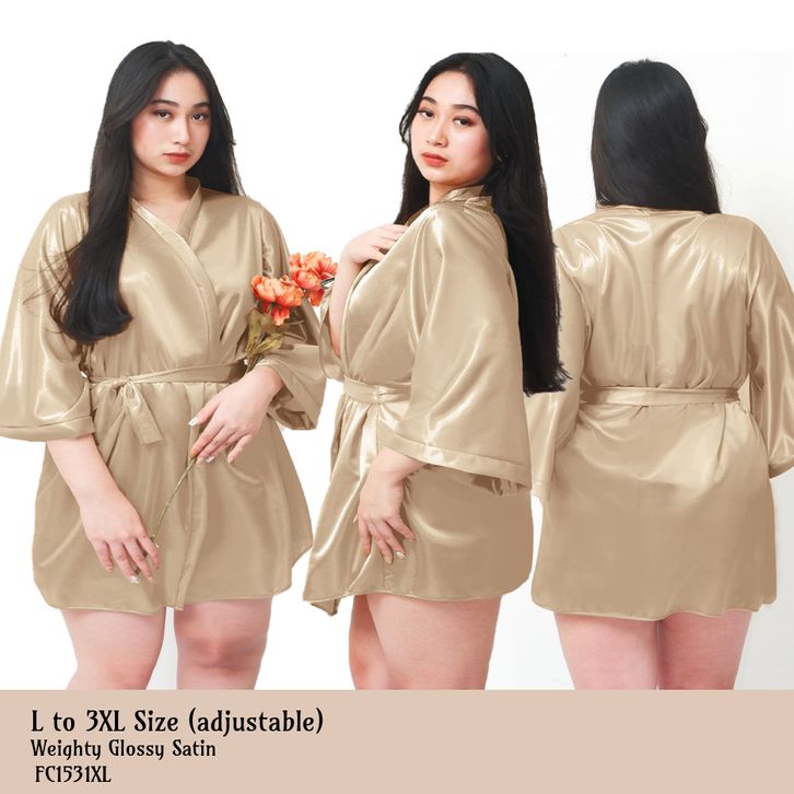Folva Kimono Wanita Bridesmaid Sleeping Robe Satin Big Size Jumbo Xl Free Ongkir Jabodetabek