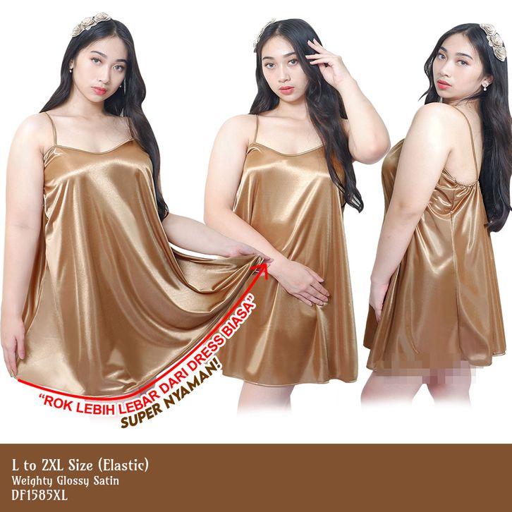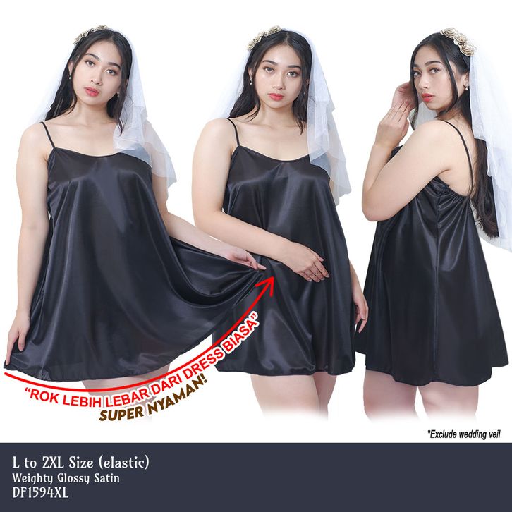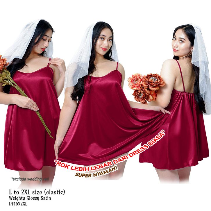 Folva Lingerie Tanktop Dress Satin Mekar Big Size Jumbo Free Ongkir Jabodetabek