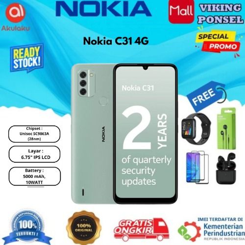 [ BEST SELLER] Nokia C31 4G 64GB RAM 4GB ll Android 12 - Garansi Resmi 100% Original