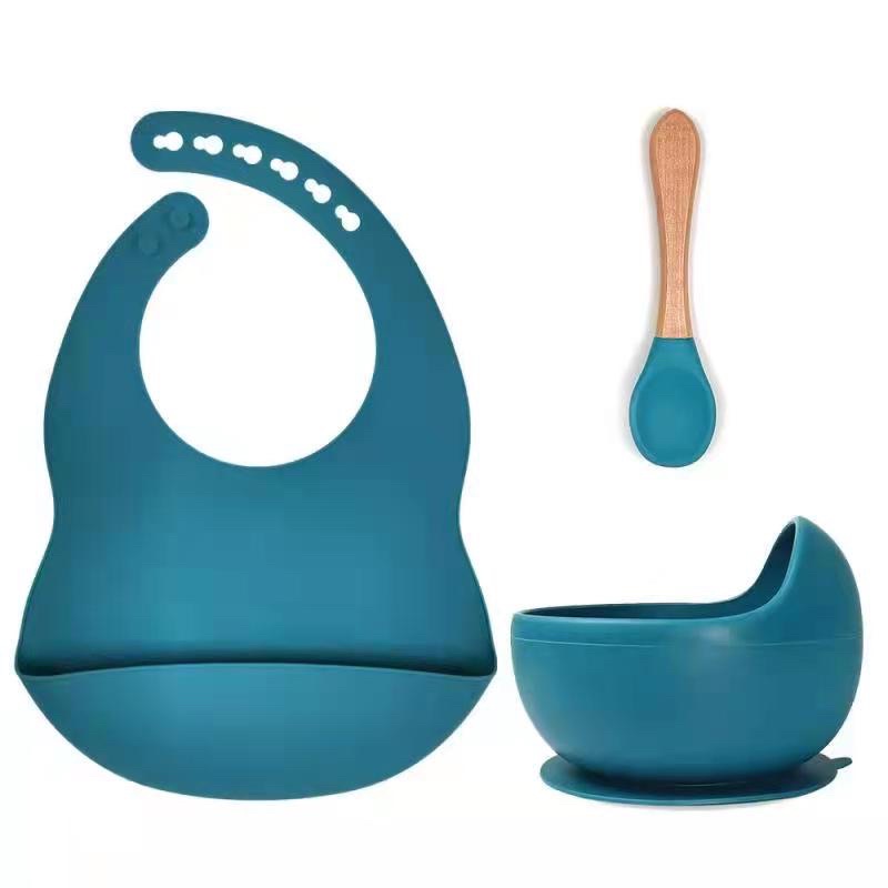 Mangkok Bayi Set Sendok Bib Warna Anti Slip / Mangkuk Set Tempat Makan Anak / Suction Bowl