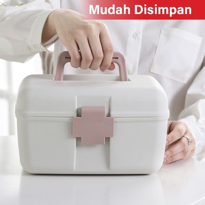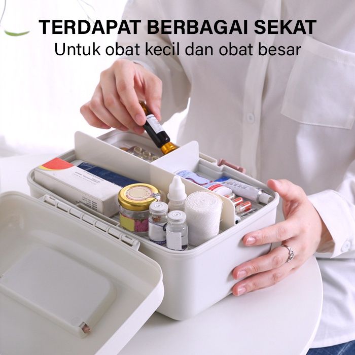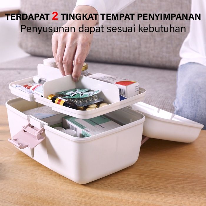 Kotak Obat Kotak Penyimpanan P3k Box Organizer Suplemen Dan Vitamin Dengan 2 Tempat Warna Putih Tulang dijamin Higienis