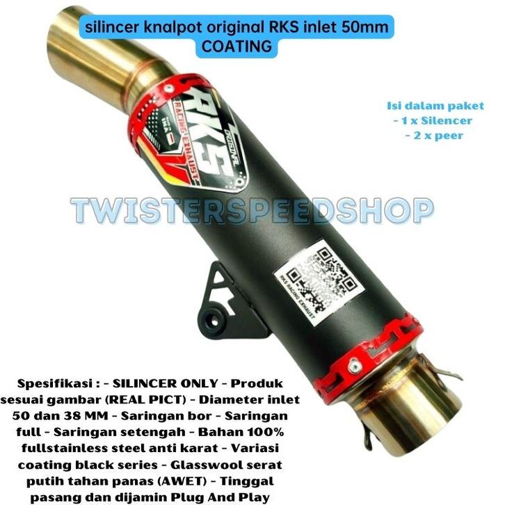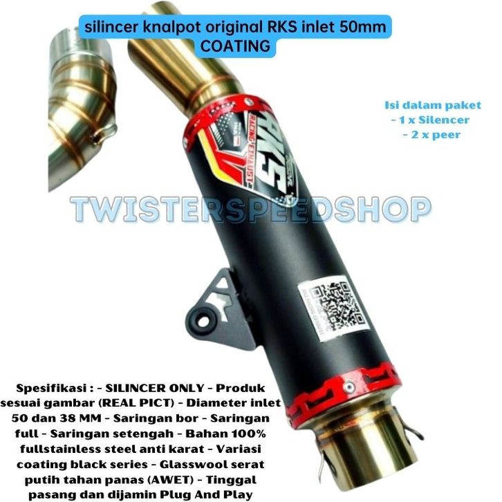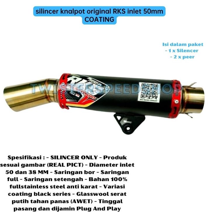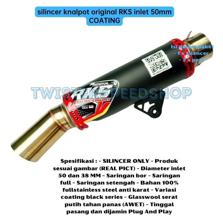 SILINCER KNALPOT ORIGINAL RKS INLET 50MM COATING AEROX 155 OLD NEW N MAX 155 NEW PCX 150 VARIO 125/150 160 MIO J M3 Z GE