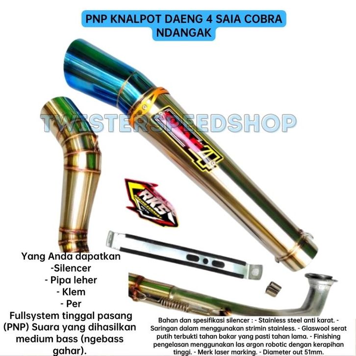 KNALPOT DAENG 4 SAIA COBRA NDANGAK BEAT FI KARBU VARIO 110 FI KARBU VARIO 125/150 160 PCX 150 160 AEROX 155 OLD NEW N MA