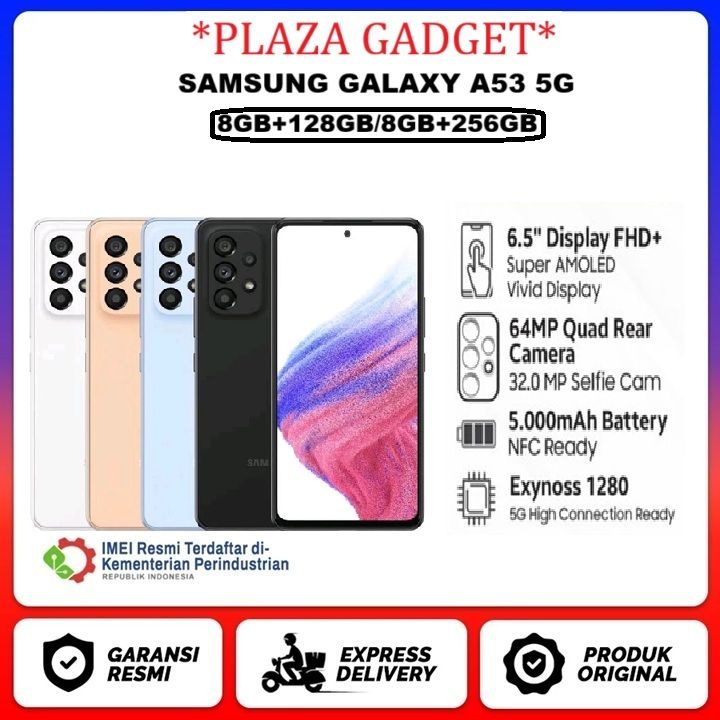 SAMSUNG GALAXY A53 5G 8/128GB+8/256GB Chipset Exynos 1280 (5 nm) Main Camera Quad 64 MP, Battery Type Li-Po 5000 mAh,