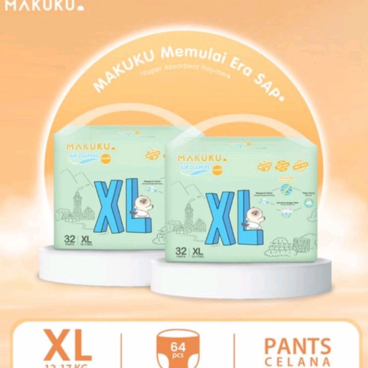 Makuku Air Diapers Comfort+ anti gumpal ukuran S36/M34/L32/XL32/XXL28 - COMFORT