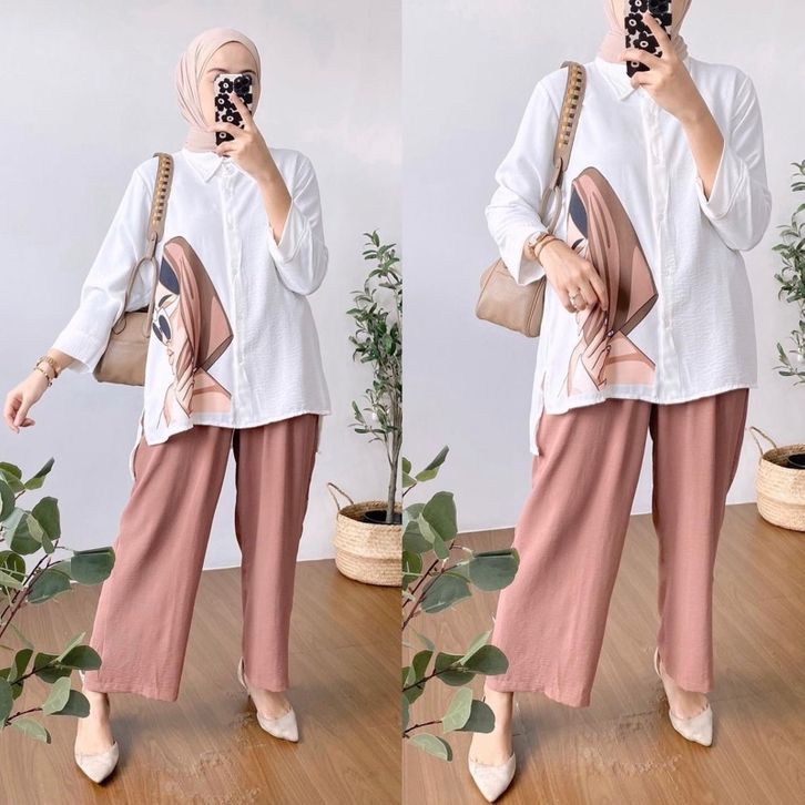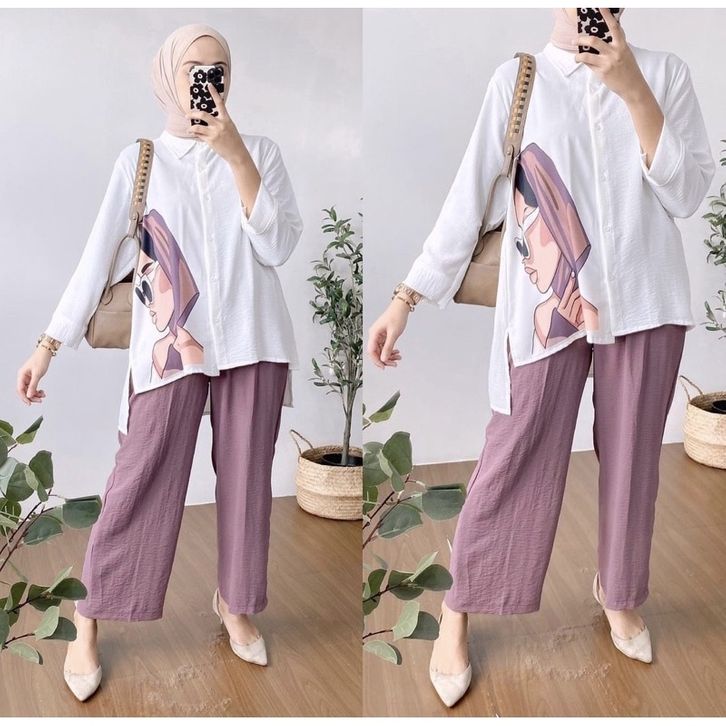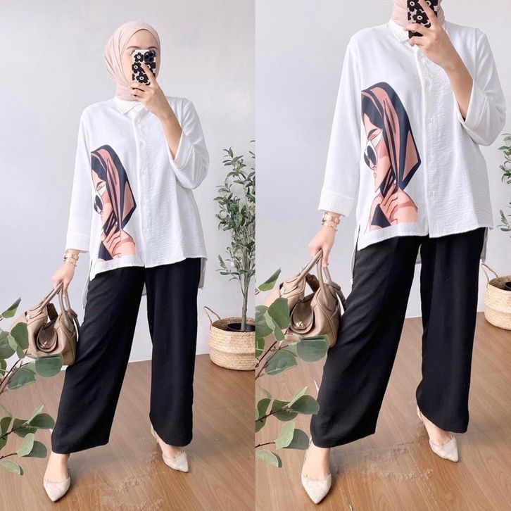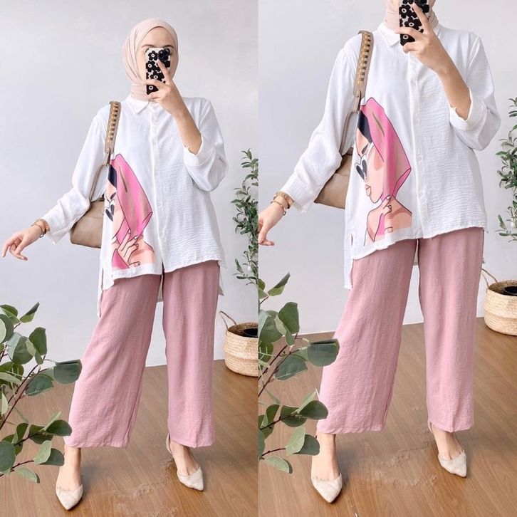 Baju Setelan Wanita Murah Yuca Set Crinkle Cropty Sablon