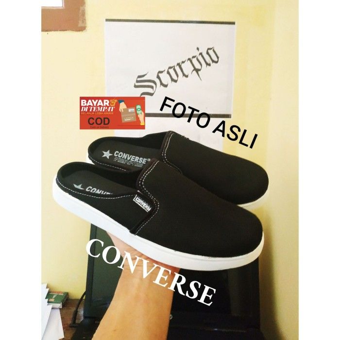 SEPATU SANDAL SLOP SENDAL SELOP PRIA COWOK COWO WARNA HITAM