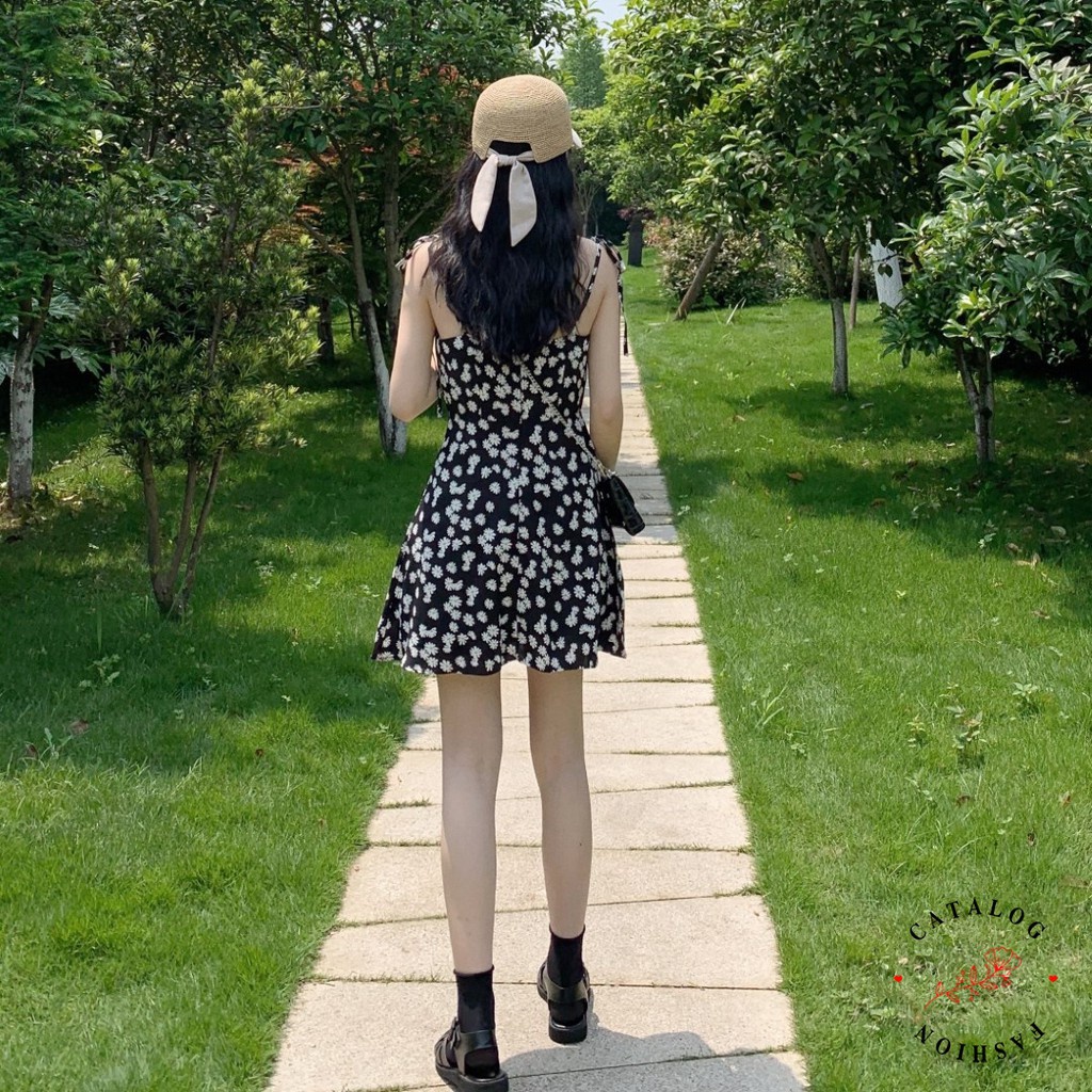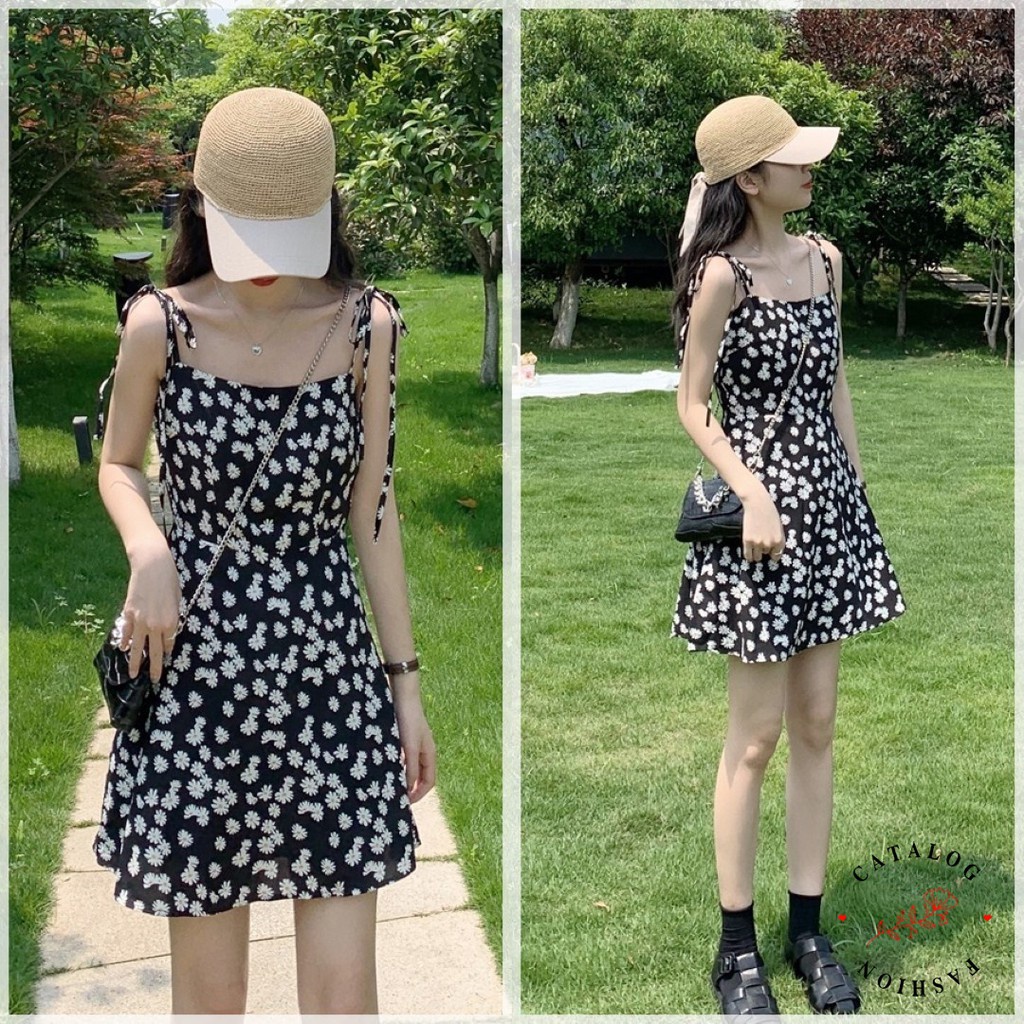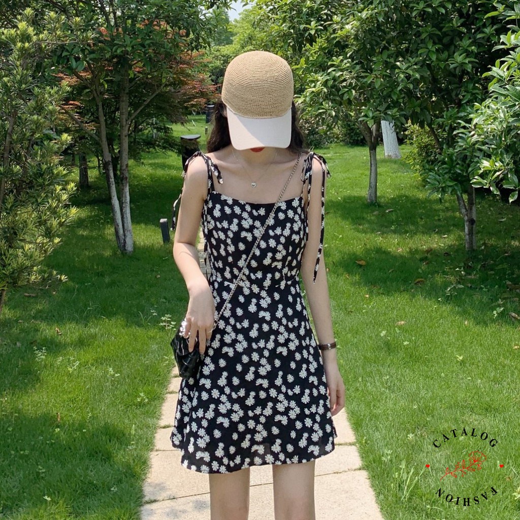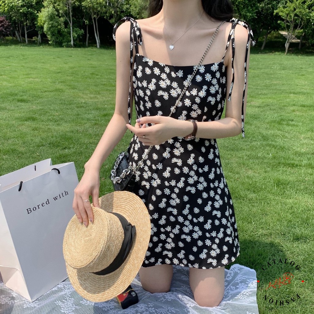 Dress Tali Sunny - Dress Print Daisy Tali Spaghetti / Mini Dress Wanita Korean Style