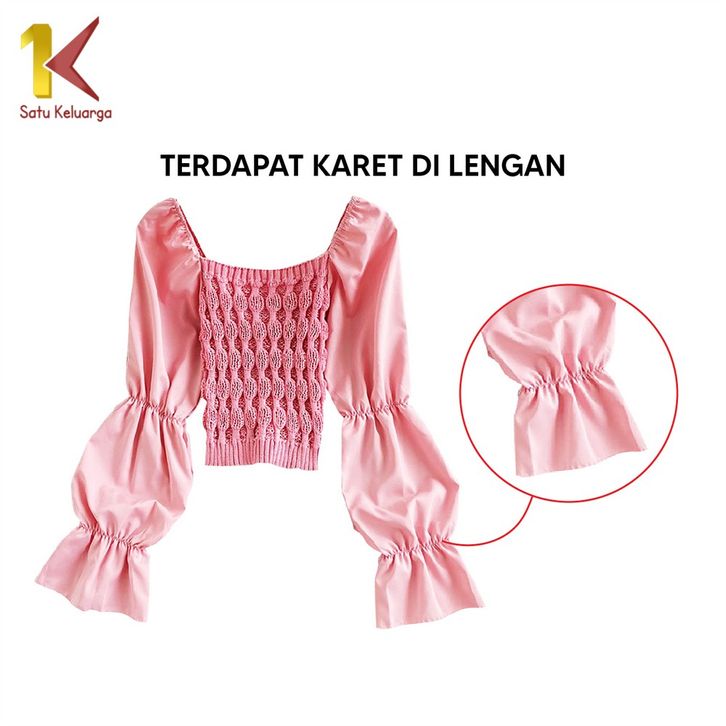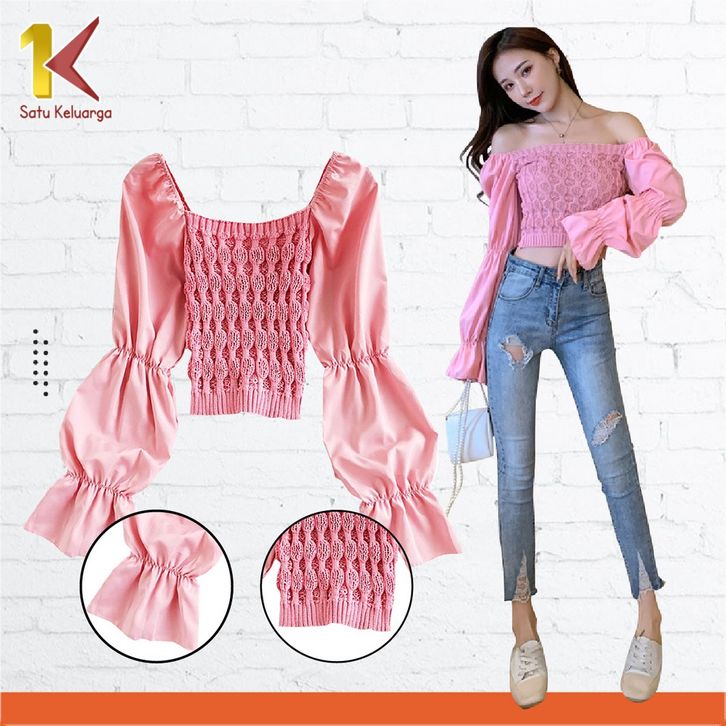 Atasan Sabrina Blouse Lengan Panjang Bahan Rajut Baju Wanita Kekinian Top Knit Fashioin Street 1K P431