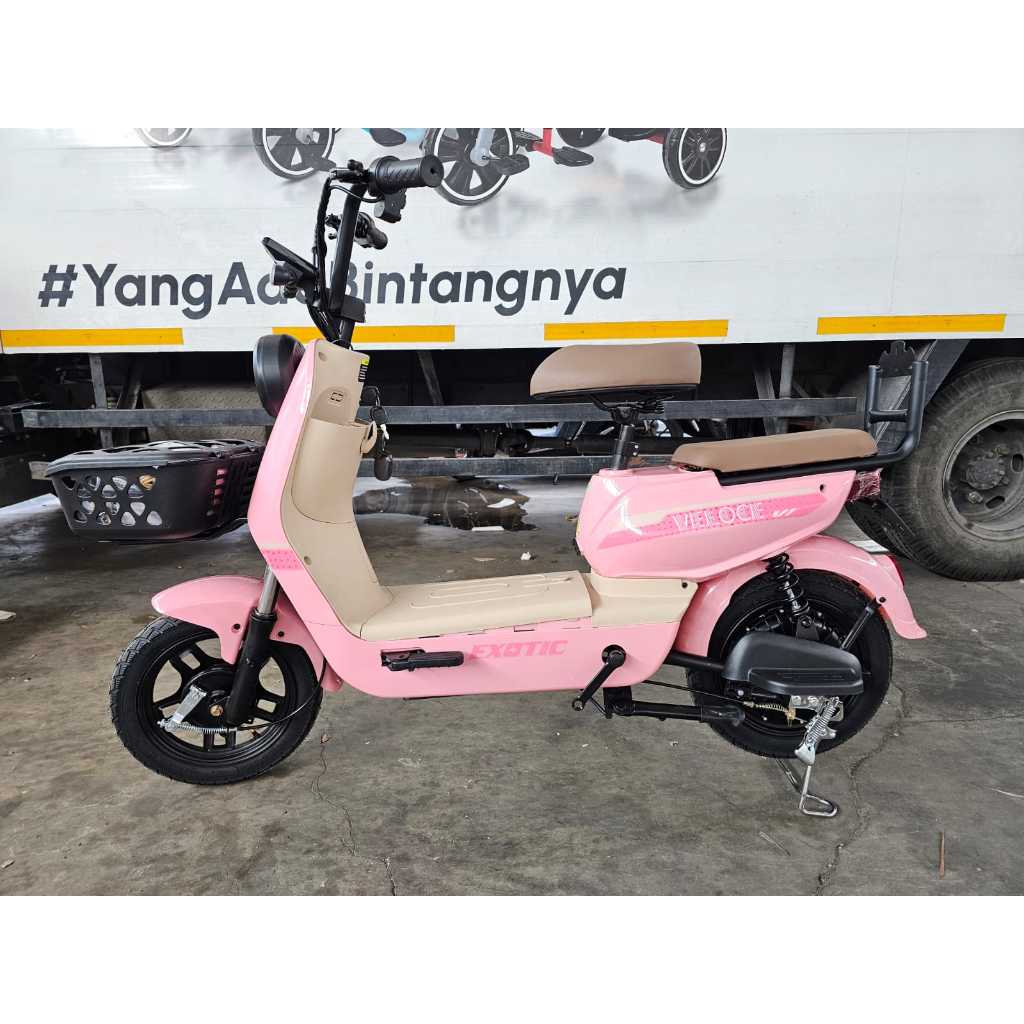 SEPEDA LISTRIK EXOTIC VELOCE V1 PINK SEPEDAH MOTOR DEWASA ANAK LAKI LAKI PEREMPUAN MURAH TANPA DP GARANSI RESMI