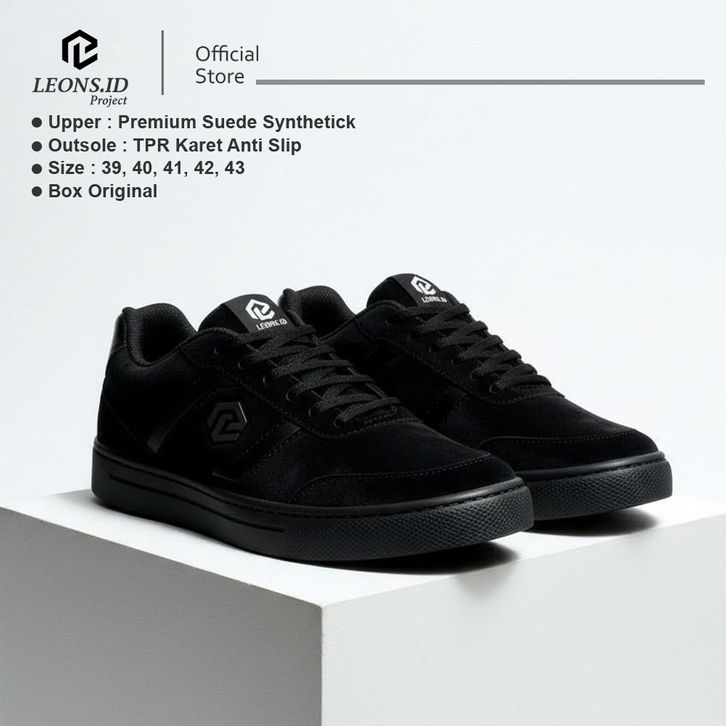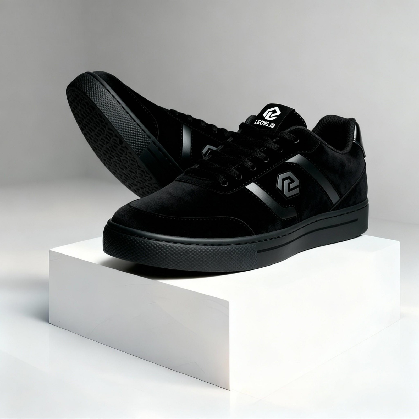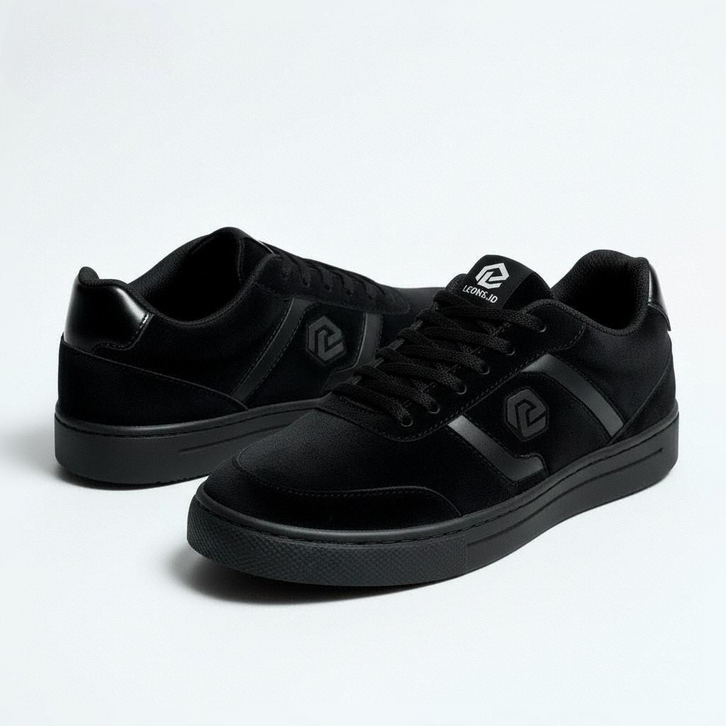 ARIES FULL BLACK | Sairashoes - Leons | Sepatu Sneakers Pria Hitam Casual Formal Suede ORIGINAL