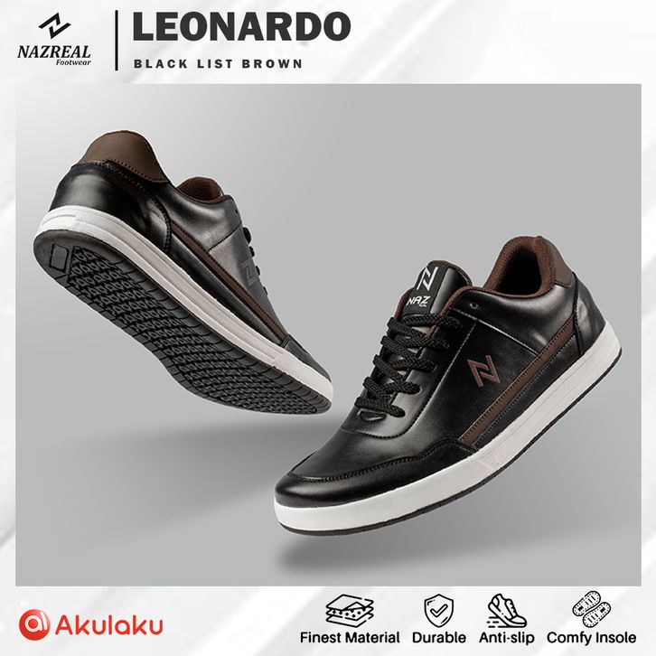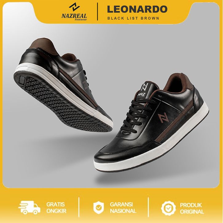 LEONARDO BLACK | Sairashoes - Naz | Sepatu Sneakers Pria Hitam Casual Sepatu Kulit Pria ORIGINAL