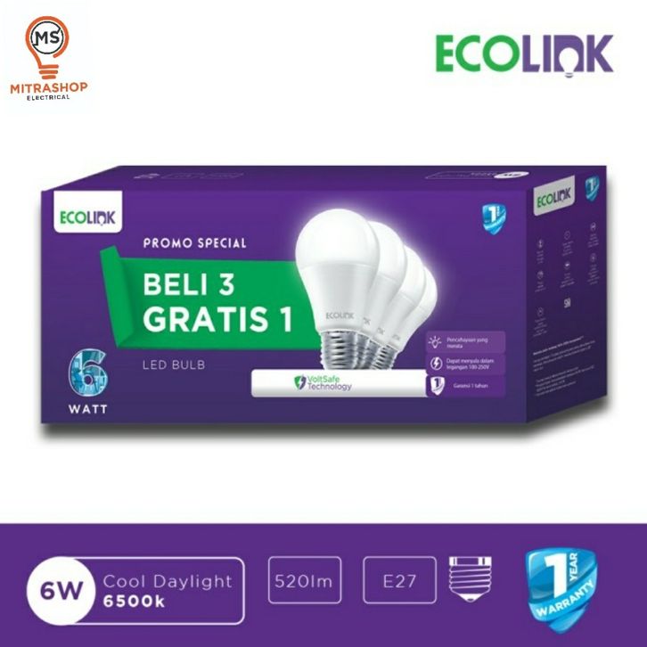 [BELI 3 GRATIS 1] Lampu Ecolink LedBulb Pack 6W 8W 10W 12W 6500K E27 - Lampu LED Ecolink