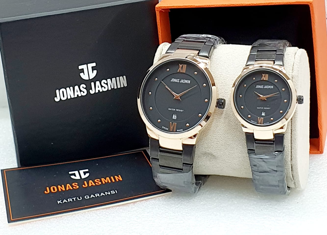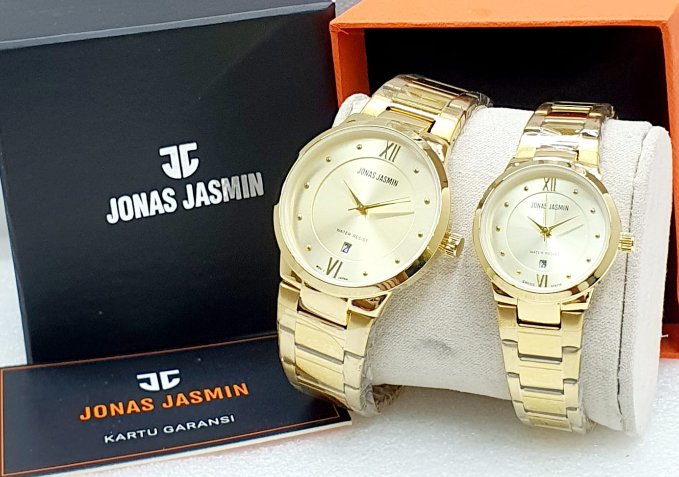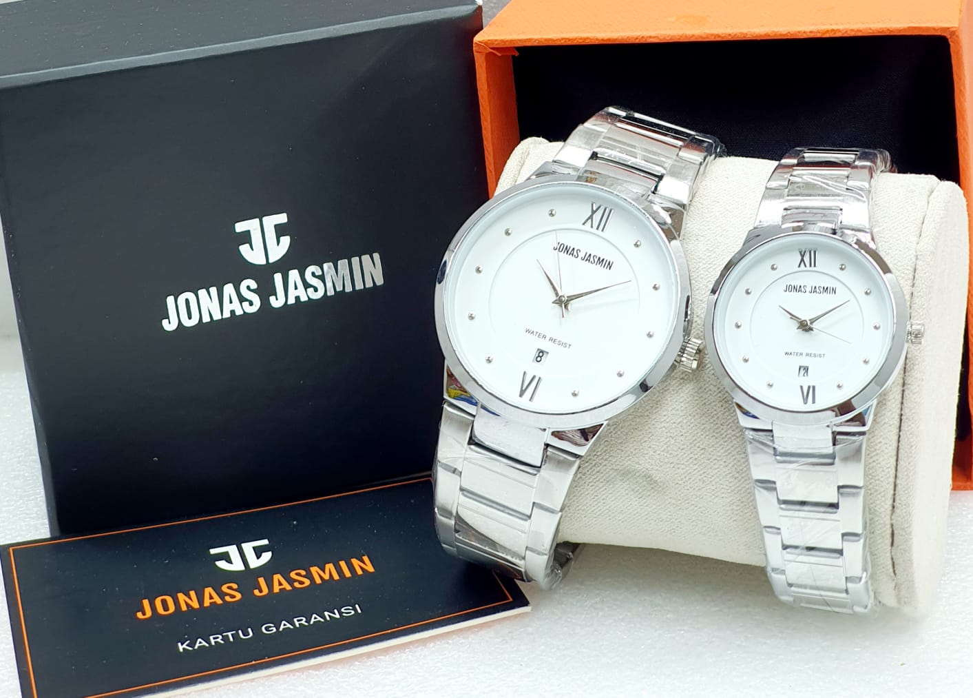 [Mall] Jam Tangan Couple Original Jonas Jasmin JJ- 3105ML Rantai Stainless Steel Tanggal Aktif Elegan Anti Air