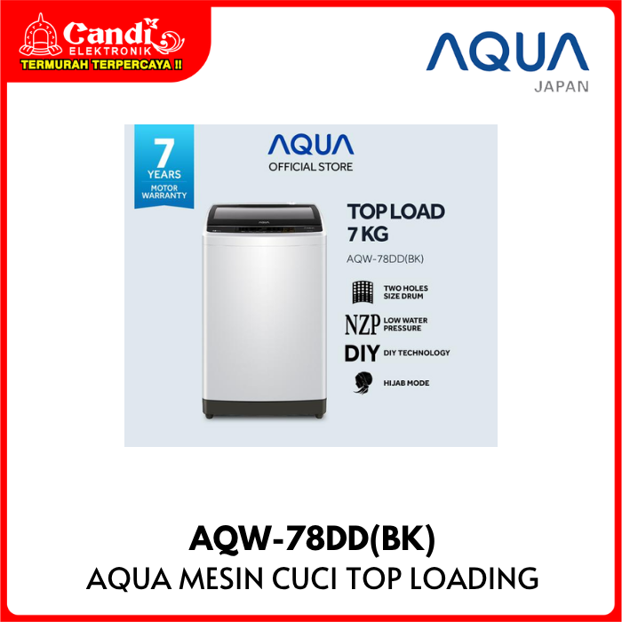 AQUA Mesin Cuci Bukaan Atas Top Loading 7 kg Hijab Wash AQW-78DD(BK)