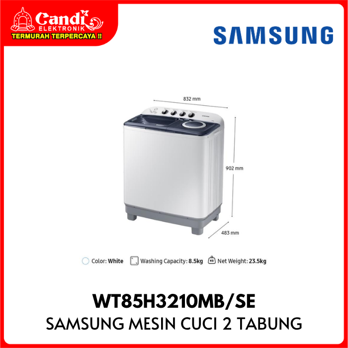 SAMSUNG Mesin Cuci 2 Tabung Kapasitas 8,5 Kg WT85H3210MB/SE
