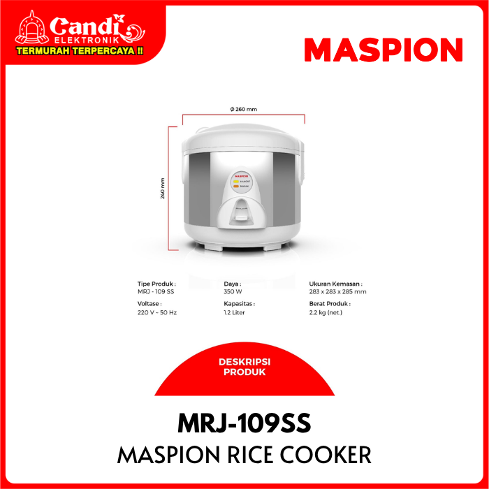 MASPION Rice Magic Cooker 1,2 Liter MRJ-109SS