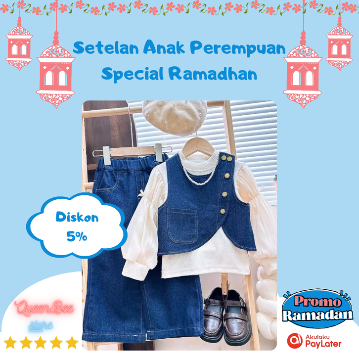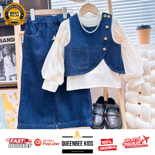 Setelan One Set 3in1 Fashion Anak Perempuan Blouse Rompi Celana Jeans Kulot
