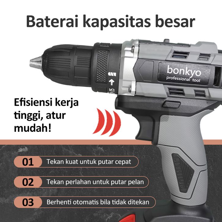[Star] Mesin Bor Baterai Bonkyo 168VF Mesin Bor Impact Drill / Bor baterai /Bor Listrik/Beton Besi Kayu Full Set Pilihan