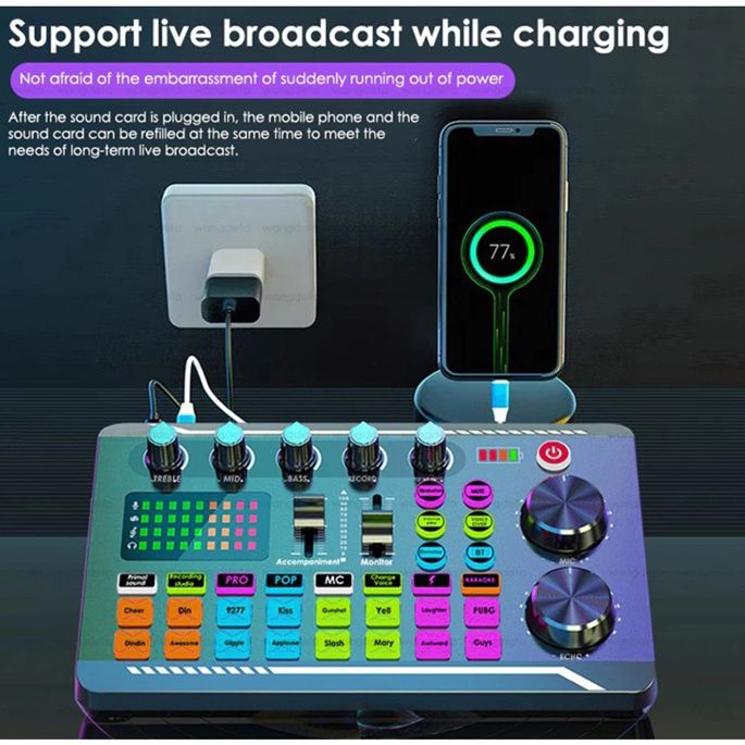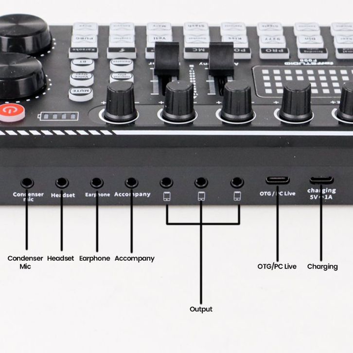 TAFFSTUDIO CRUST PRO AUDIO INTERFACE BLUETOOTH MIXER SOUND CARD LIVE BROADCAST KARAOKE - F998 - BLACK