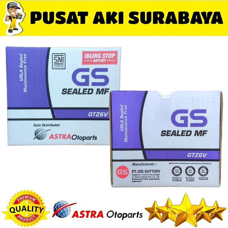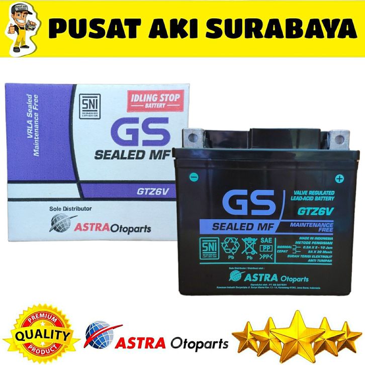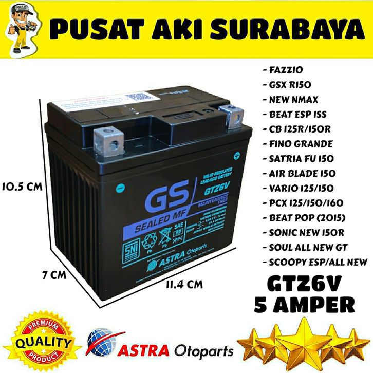 Aki GS ASTRA GTZ6V ORIGINAL ACCU KERING MF MOTOR NMAX 155 VARIO 125/150 SATRIA FU CBR CRF SCOOPY-FI