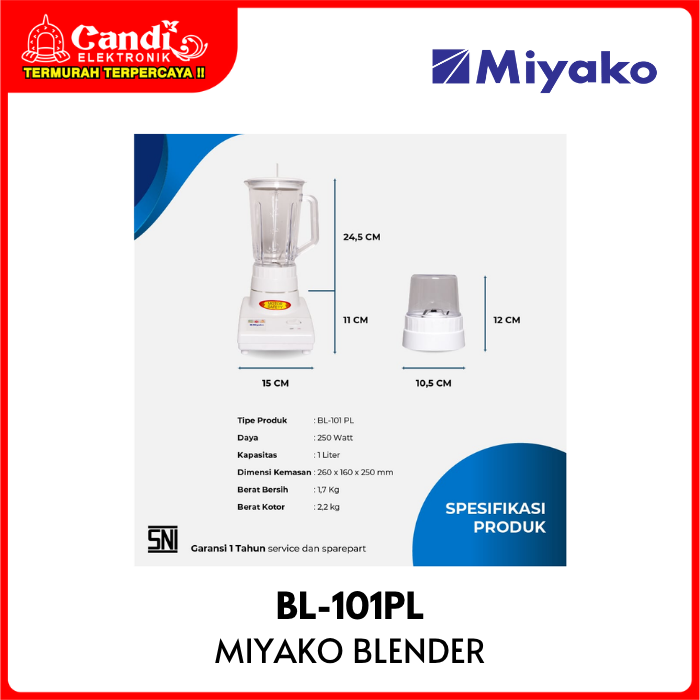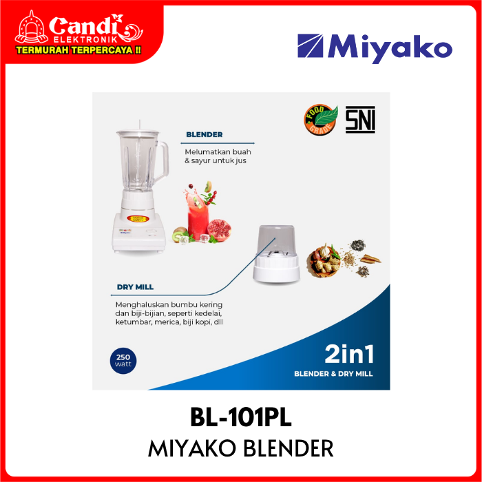MIYAKO Blender Plastik Jar 1 Liter + Dry Mill BL-101PL
