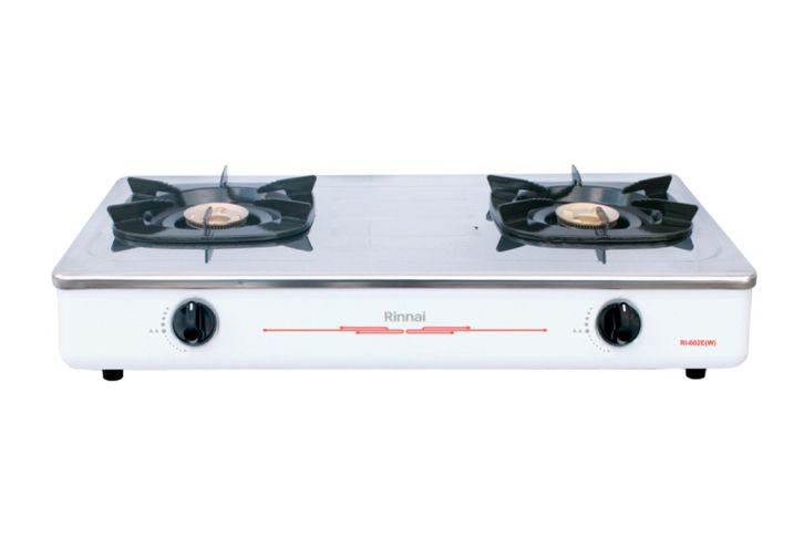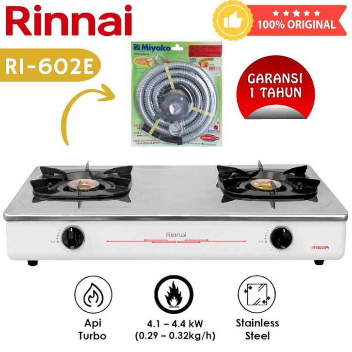 KOMPOR GAS RINNAI 2 TUNGKU RI 602E WHITE STAINLES STEEL KOMPOR GAS 2 TUNGKU ORIGINAL OFFICIAL STORE
