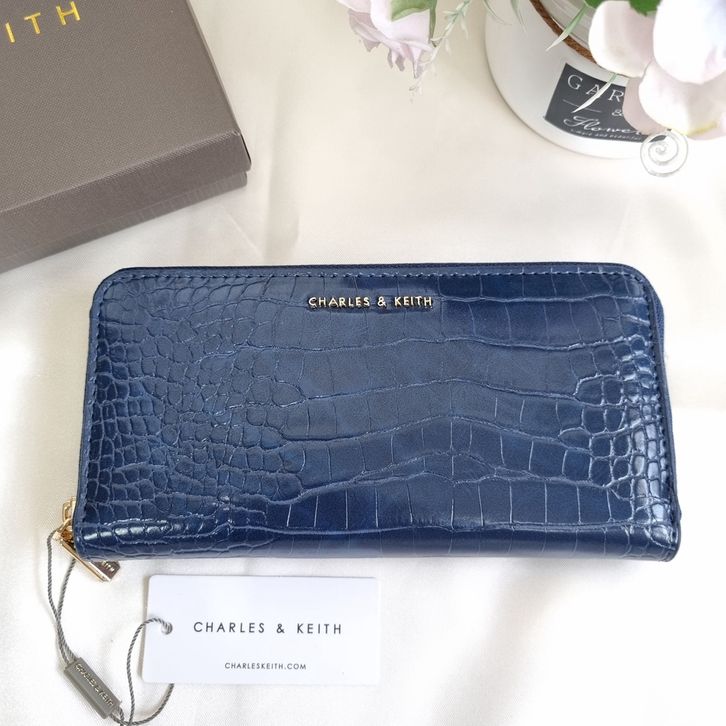 Dompet wanita ck charles and keith printed long croco effect ck027