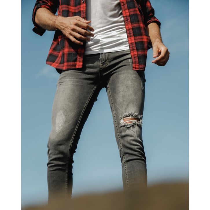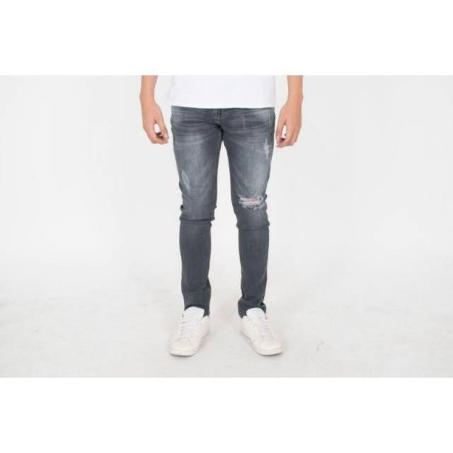 Celana Jeans Cowok Panjang Denim Smoke Grey M23 - Celana Jeans Pria Skinny Slimfit Ripped Jeans Stretch