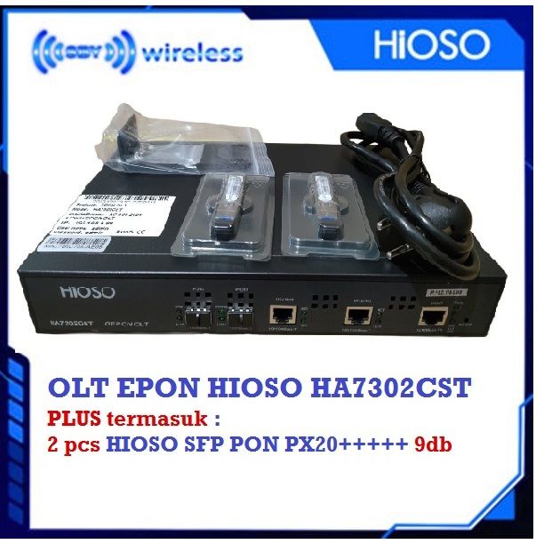 PAKET HIOSO HA7302CST + SFP Module PX20+++++ , EPON OLT HA7302 CST 2 Port Include SFP 7db 8db 9db 10db