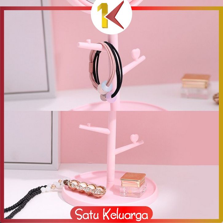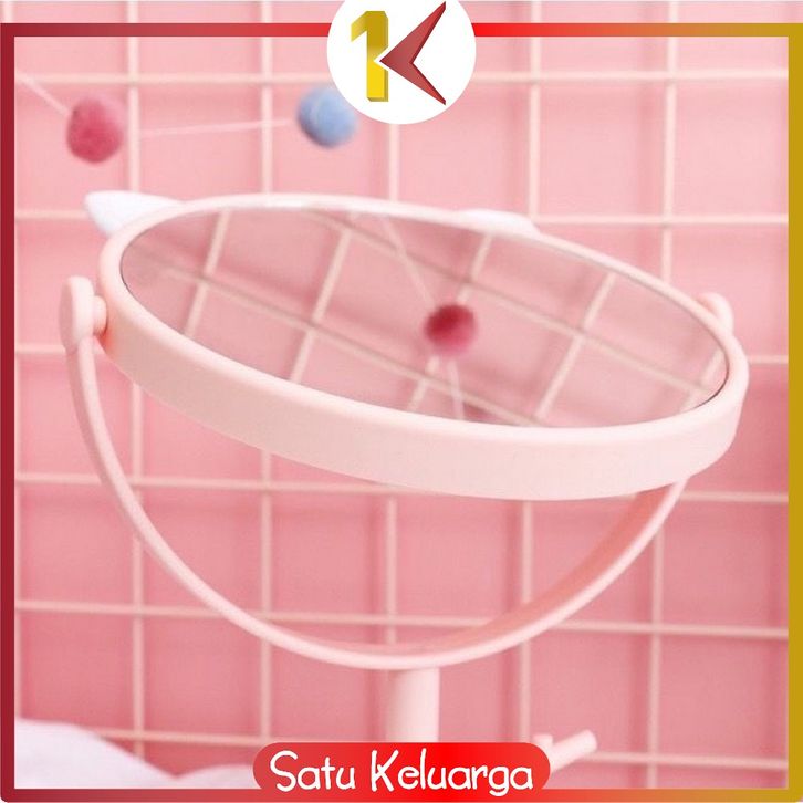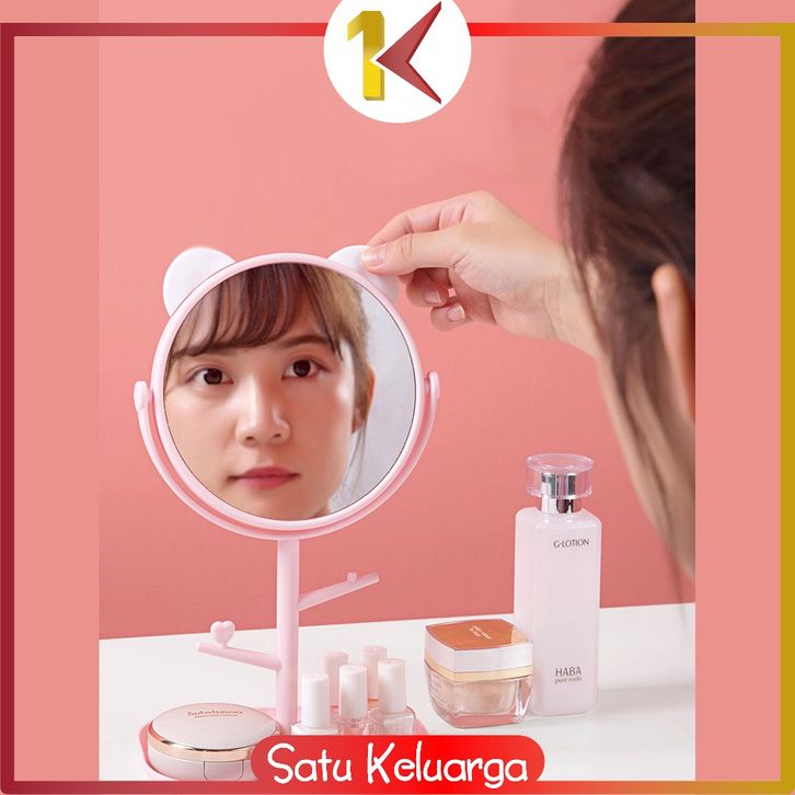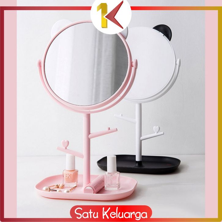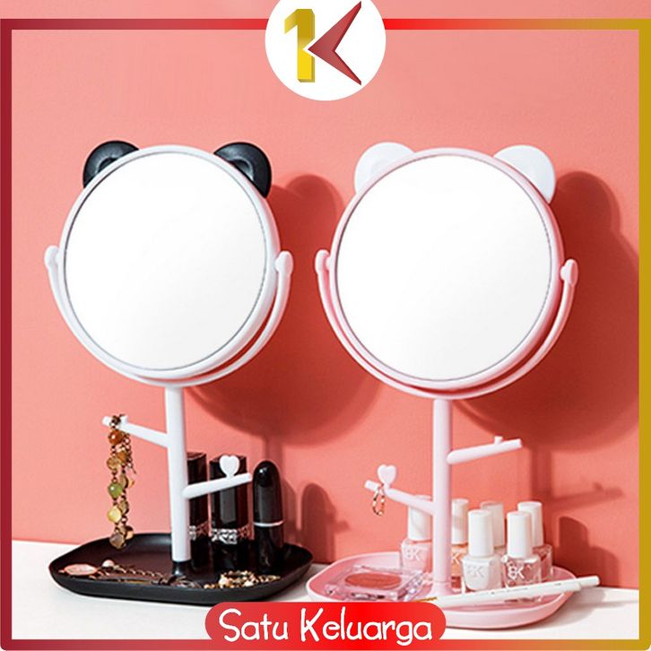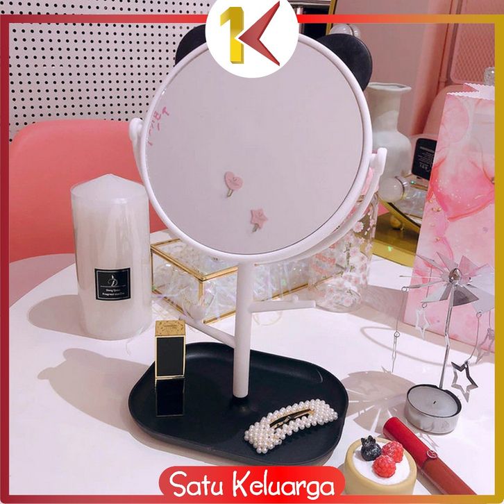 SK-K91 Cermin Motif Telinga Panda Serbaguna / Kaca Meja Rias Bulat Lucu / Standing Mirror Makeup Desktop Rotating